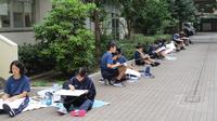 本日、1年生が写生会を開催しました。校舎内でさまざまな角度から風景を描きました。