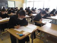 3年生の課題テスト[国語]、高校の先生による理科β、そして楽しい給食の様子です。