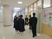 浦和中では、生徒全員の安心・安全な学校生活となるように、毎朝の健康観察を今年度も登校直後エントランスホールにて実施しております。養護教諭が中心となり各学年の先生方がエントランスに待機し、それぞれの「体温記録票」の記載内容を確認しながら全員とあいさつを交わしています。浦中生の元気な1日の始まりです。