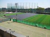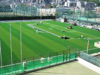 市立浦和グラウンド人工芝化工事の完成が近づいています。緑のグラウンドに立って校舎を眺めると、今までと違う景色になりました。(完成検査が終わるまでもう少し立入禁止となります。)