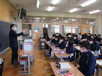 3年生では、今日から高校の先生による授業が始まりました。A組、B組ともに古典でした。