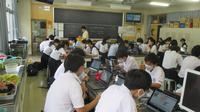 コミュニティホールでは、あけぼの会のご支援で中高で一括導入している「駿台サテネット21」を利用した講習を全学年対象で実施しました。来週も毎日開講します。